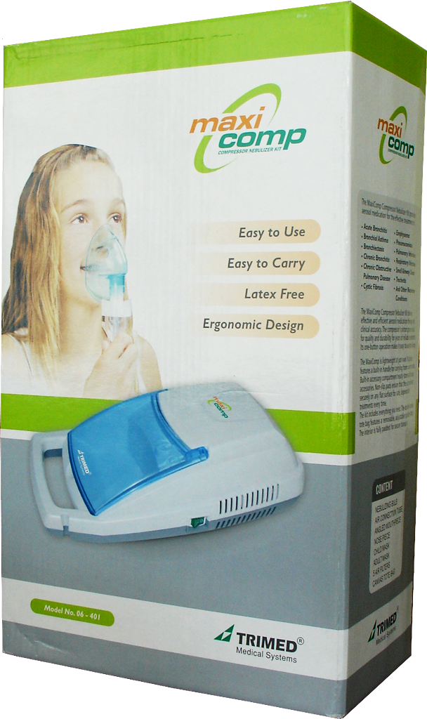 Kit yang lengkap : botol nebulizer, selang udara, saringan udara, masker dewasa, masker anak, nose piece, mouth piece, carrying bag