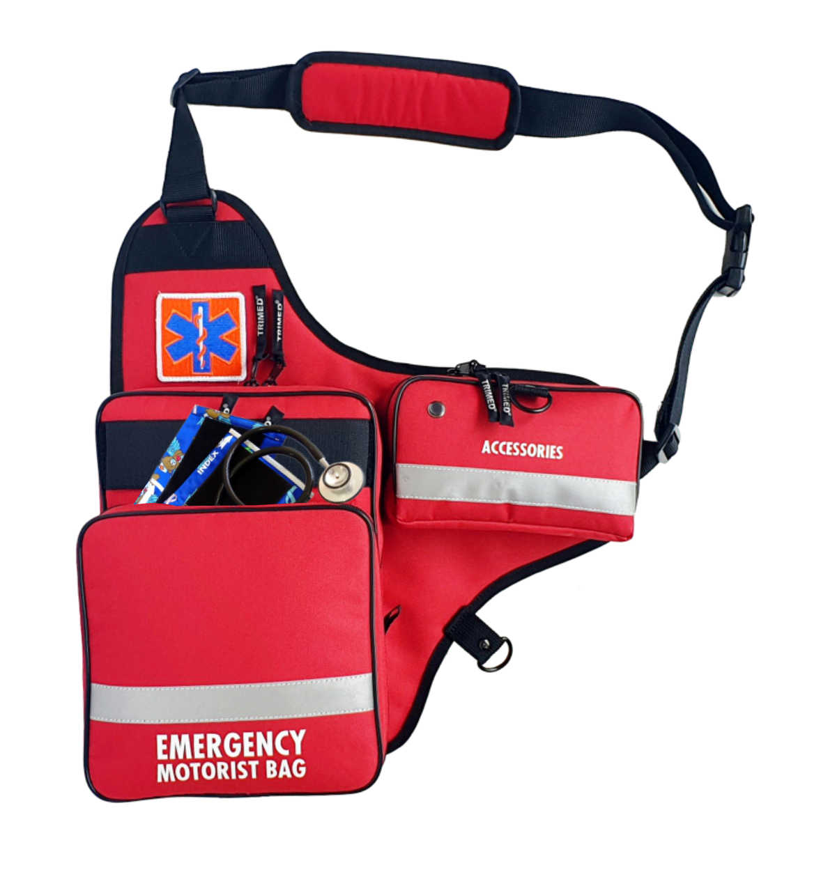 Item No : EMK 171 RDEmergency Motorist Bag didesain sebagai tas untuk digunakan oleh para prakrisi medis bermotor dilengkapi dengan Aneroid Sphygmomanometer manset bercorak dan stetoscope. Sehingga memberikan kemudahan dan kenyamanan dalam mereka bermanuver dalam kendaraannya di jalan atau gang sempit sekalipun saat bertugas. Tas ini sangat menarik desainnya dan dibuat dari bahan polyamide 600D warna merah yang kuat dan tahan air, dengan print putih menyolok 'Emergency Motorist Bag', juga dilengkapi dengan reflective tape 3M sehingga mudah dilihat dalam kegelapan (glowing in the dark). Tersedia Velcro part lebar 5 cm untuk menulis nama pemiliknya.