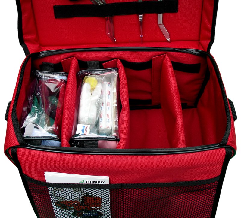 Item No : EMK 121 RDKit yang ideal untuk tindakan pertolongan pertama pada kecelakaan lalu lintas. Kit ini berisi perlengkapan medis yang disimpan dalam empat buah kantung modul transparan yang berbeda warna untuk memudahkan identifikasi isinya. Tas dibuat dengan desain yang menarik, warna yang mencolok dan praktis, mudah dibawa dengan cara dijinjing atau diselendangkan. Tas dilengkapi dengan reflective tape agar mudah dikenal dan dilihat dalam gelap.